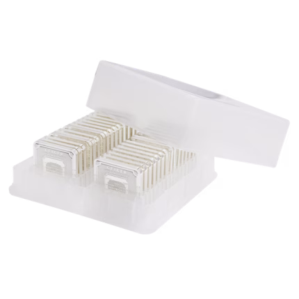 Lingote de plata de 20 g fabricado por Nadir Metal Rafineri. Plata 999, certificado y número de serie. Ideal para empezar a invertir o regalar valor real.