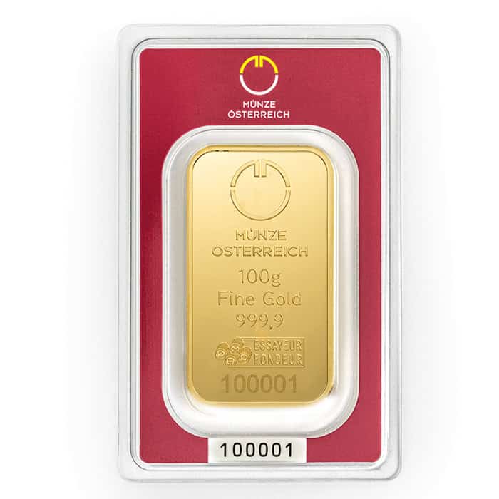 El Lingote de Oro 100g – Münze Österreich es una pieza de inversión fabricada por la prestigiosa casa austríaca Münze Österreich, reconocida internacionalmente por la pureza y calidad de sus lingotes y monedas. Esta refinería, con sello Good Delivery, garantiza un estándar de excelencia comparable a las mejores refinerías suizas.