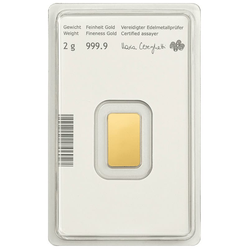 Acuñado en oro puro 999,9 (24k), este lingote de 2 gramos ofrece un formato perfecto para quienes buscan comenzar en la inversión en oro físico o diversificar su ahorro con una pieza de tamaño compacto y alta liquidez.